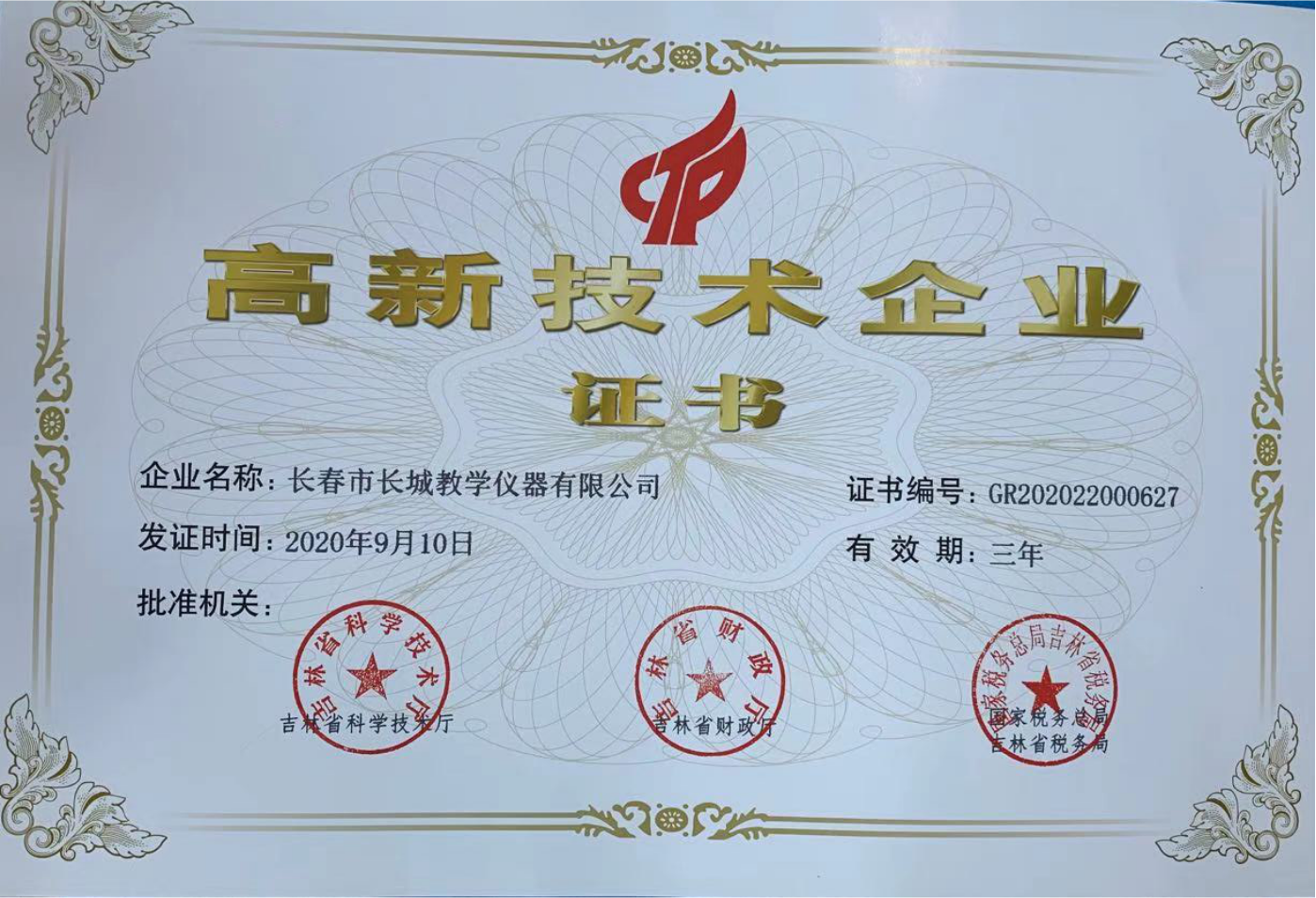 热烈祝贺长春市长城教学仪器有限公司成为国家高新技术企业