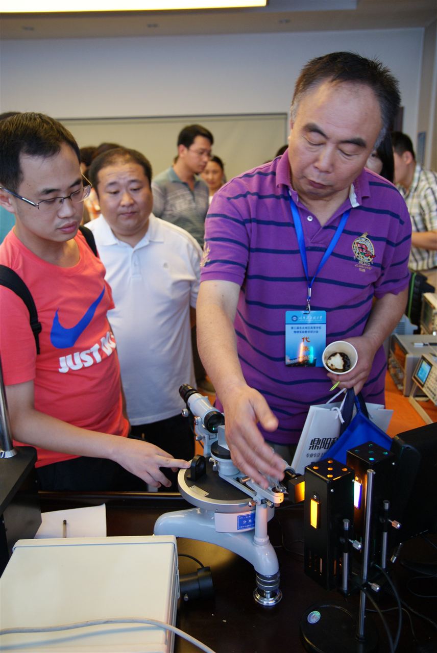 产品展示过程中我单位生产的力电光综合实验仪、流水式核磁共振实验装置、自组式多功能光学组合实验仪、CCD大孔径分光计等产品,深受到会各位老师的*。
